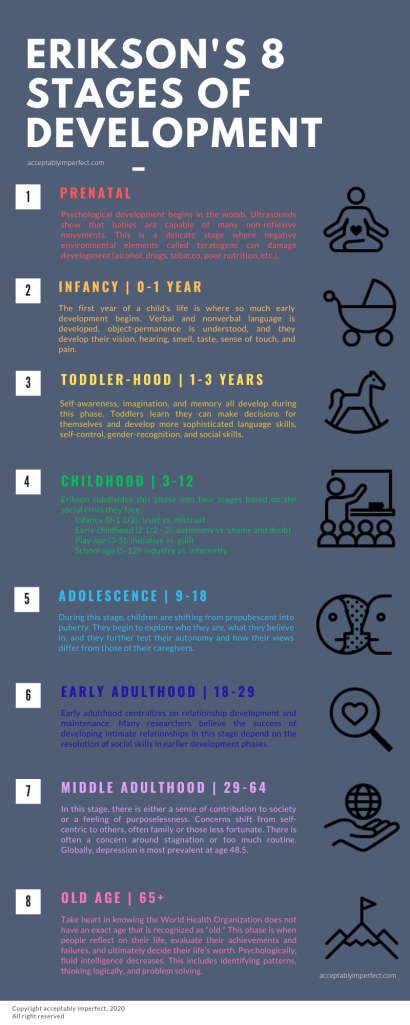 Before we jump into the studies, it’s worth defining the stages of development. A guy named Erik Erikson defined these stages in the early 1900s to classify humans by age and psychological capacity.